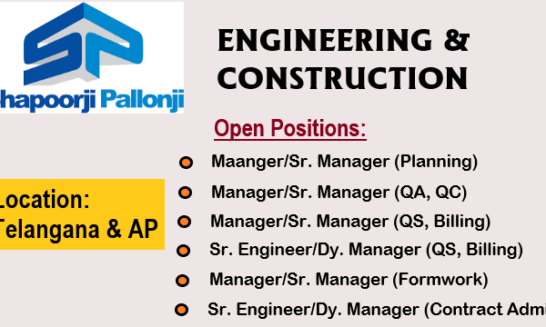 Company Name Shapoorji Pallonji Engineering & Construction We are looking for qualified, experienced, target-conscious and result-oriented construction professionals for our ongoing and upcoming projects across …